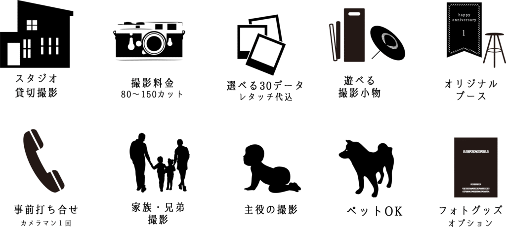 定番の撮影小物で遊びながら、今だけの愛おしい姿を撮影します。