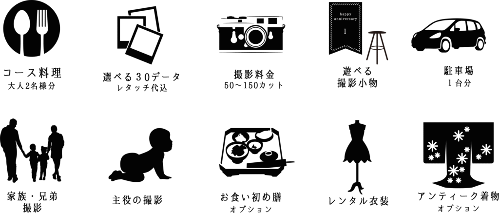 コトコトオリジナルお食い初め膳、儀式シーン撮影、お食い初めブース、撮影代金、15データのセット